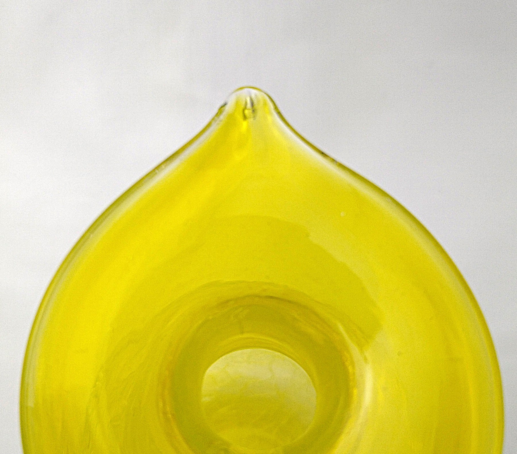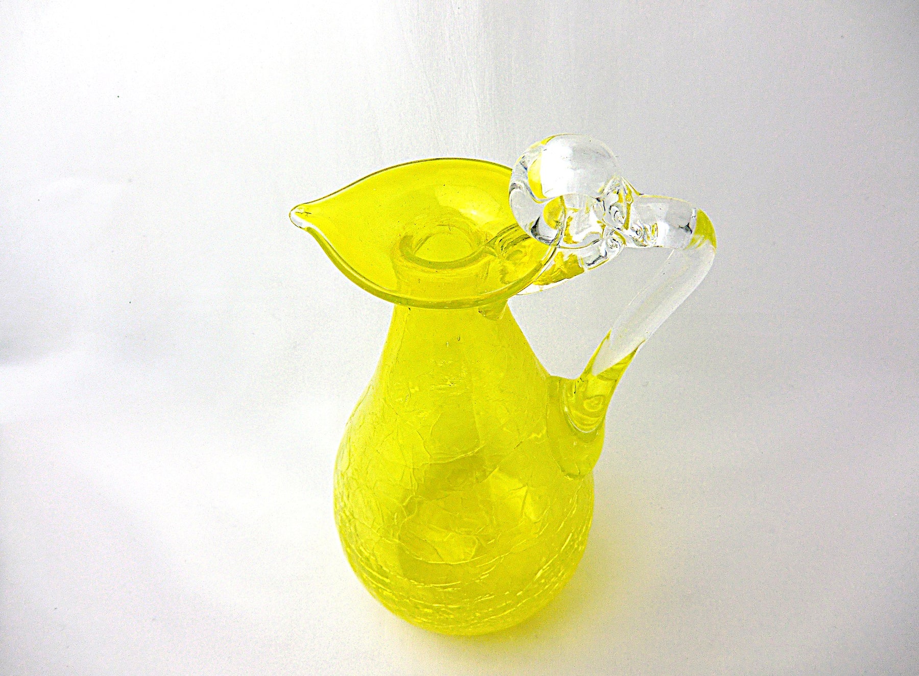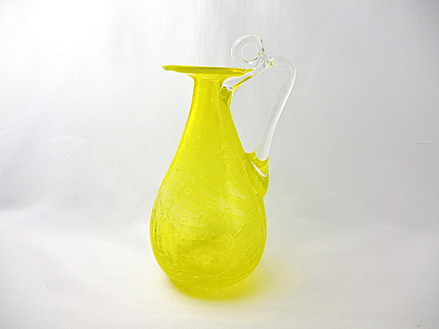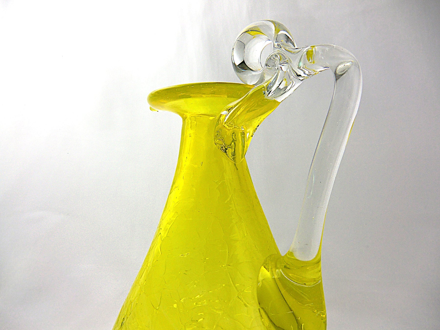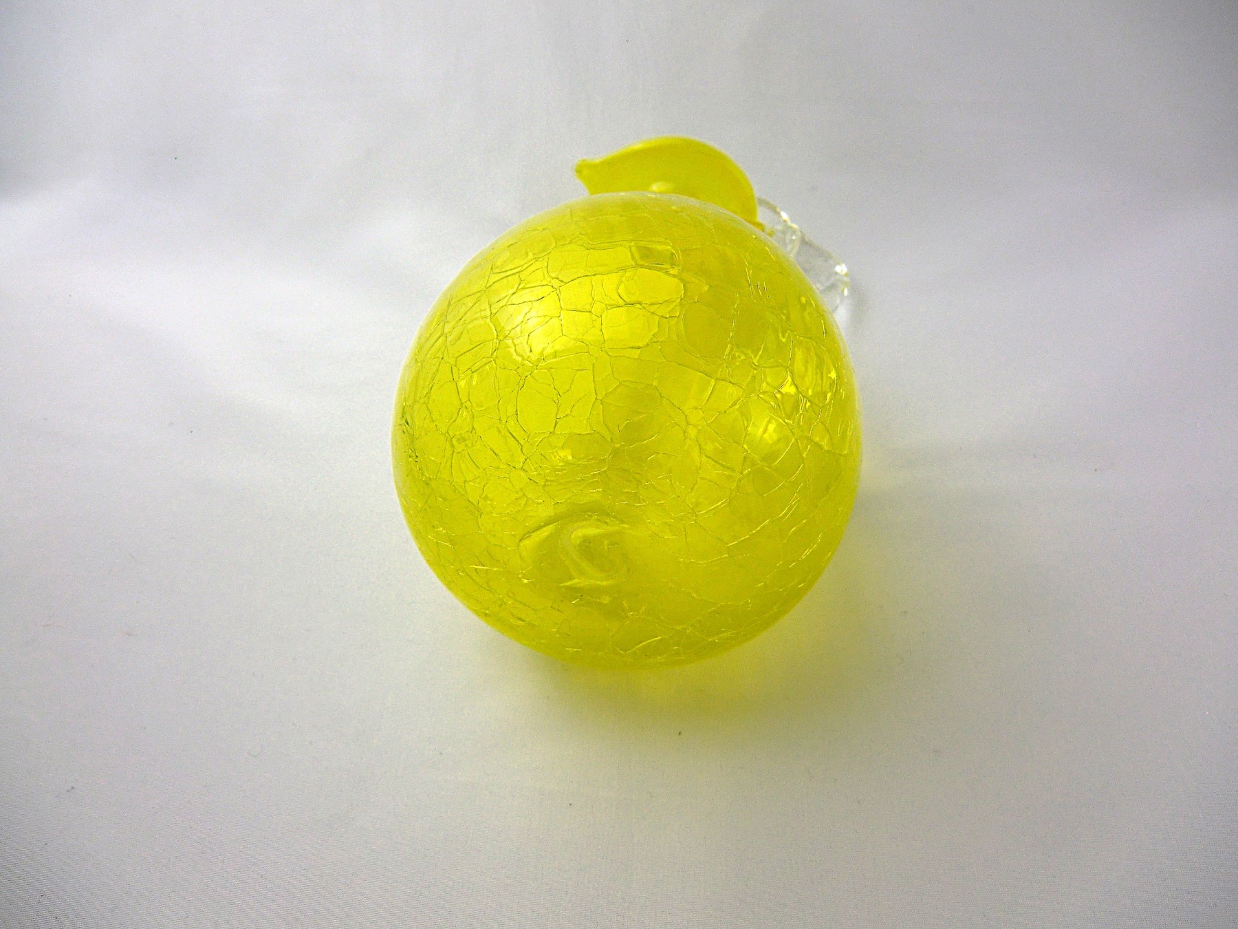 真夏の太陽のような元気なサフランカラーのフラワーベースです。人気のクラックガラスと呼ばれるデザインで、表面に入れられたクラック(ヒビ割れ)模様が、光を乱反射してキラキラと輝きます。